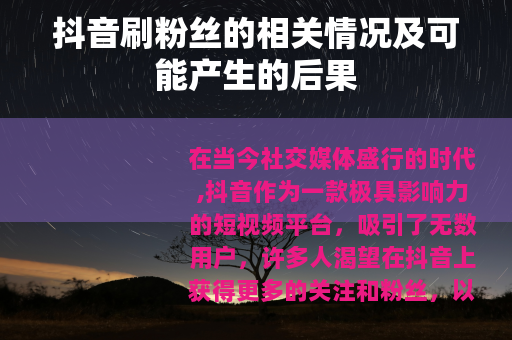 在当今社交媒体盛行的时代,抖音作为一款极具影响力的短视频平台,吸引了无数用户,许多人渴望在抖音上获得更多的关注和粉丝,以展示自己的才华或推广自己的产品、服务等,一个问题便应运而生:抖音刷粉丝会怎样呢?