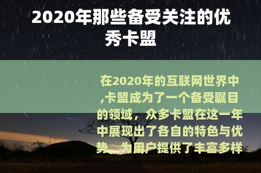 在2020年的互联网世界中,卡盟成为了一个备受瞩目的领域,众多卡盟在这一年中展现出了各自的特色与优势,为用户提供了丰富多样的服务。