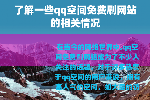 在当今的网络世界中,qq空间免费刷网站成为了不少人关注的话题,对于许多热衷于qq空间的用户来说,拥有高人气的空间,如大量的访客量、点赞数、评论数等,是他们所期望的,而一些免费刷网站便应运而生,为这些用户提供了一种看似便捷的途径。
