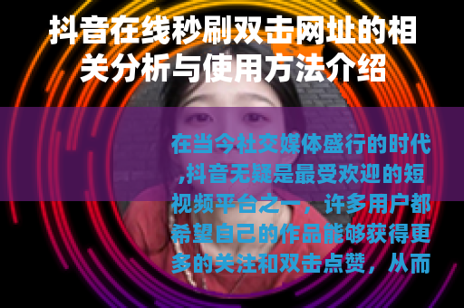 在当今社交媒体盛行的时代,抖音无疑是最受欢迎的短视频平台之一,许多用户都希望自己的作品能够获得更多的关注和双击点赞,从而提升在平台上的影响力,而抖音在线秒刷双击网址也应运而生,成为了一些用户关注的焦点。