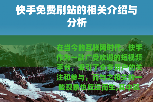 在当今的互联网时代,快手作为一款广受欢迎的短视频平台,吸引了众多用户的关注和参与,而与之相关的一些现象也应运而生,其中就包括快手免费刷站。