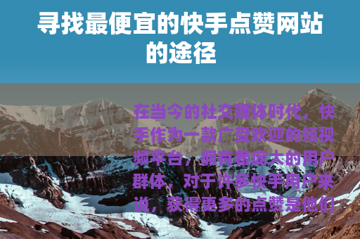 在当今的社交媒体时代,快手作为一款广受欢迎的短视频平台,拥有着庞大的用户群体,对于许多快手用户来说,获得更多的点赞是他们提升自己作品影响力和知名度的重要方式之一,不少人都在寻找最便宜的快手点赞网站,希望以较低的成本来增加自己作品的点赞量。