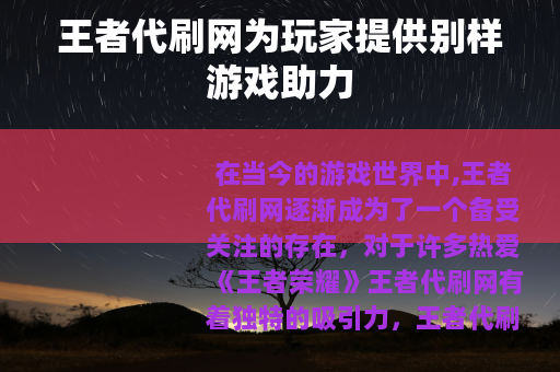 在当今的游戏世界中,王者代刷网逐渐成为了一个备受关注的存在,对于许多热爱《王者荣耀》王者代刷网有着独特的吸引力。