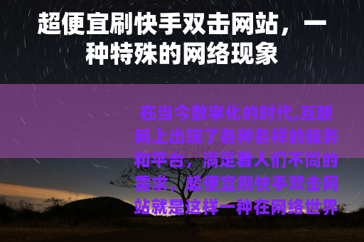 在当今数字化的时代,互联网上出现了各种各样的服务和平台,满足着人们不同的需求,超便宜刷快手双击网站就是这样一种在网络世界中逐渐兴起的现象。
