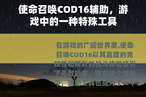 在游戏的广阔世界里,使命召唤COD16以其高度的竞技性和精彩的战斗体验吸引了无数玩家,而在这个游戏中,辅助工具也成为了一个备受关注的话题。