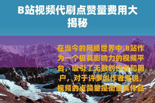在当今的网络世界中,B站作为一个极具影响力的视频平台,吸引了无数创作者和用户,对于许多创作者来说,视频的点赞量是衡量其作品受欢迎程度的一个重要指标,就出现了关于B站视频代刷点赞量的相关服务,而大家最为关心的,莫过于其费用问题。