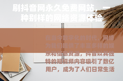 在当今数字化的时代,网络为我们提供了丰富多样的娱乐和信息资源,抖音以其独特的短视频内容吸引了数亿用户,成为了人们日常生活中不可或缺的一部分,而刷抖音网永久免费网站的出现,更是为广大抖音爱好者带来了新的便利和乐趣。