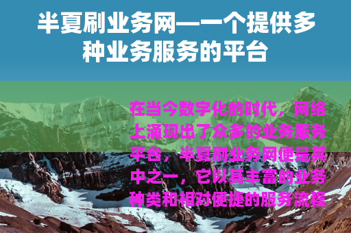 在当今数字化的时代,网络上涌现出了众多的业务服务平台,半夏刷业务网便是其中之一,它以其丰富的业务种类和相对便捷的服务流程,吸引了不少用户的关注。