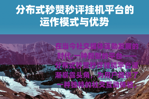 在当今社交媒体蓬勃发展的时代,一种新型的平台——分布式秒赞秒评挂机平台逐渐崭露头角,为用户提供了一种独特的社交互动体验。