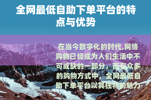 在当今数字化的时代,网络购物已经成为人们生活中不可或缺的一部分,而在众多的购物方式中,全网最低自助下单平台以其独特的魅力吸引着越来越多的消费者。