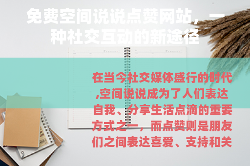 在当今社交媒体盛行的时代,空间说说成为了人们表达自我、分享生活点滴的重要方式之一,而点赞则是朋友们之间表达喜爱、支持和关注的一种简单而直接的互动手段,随着网络技术的不断发展,出现了一些空间说说点赞网站免费的平台,为用户提供了一种增加说说热度和关注度的新途径。