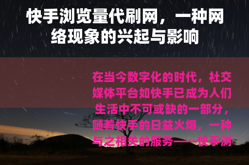 在当今数字化的时代,社交媒体平台如快手已成为人们生活中不可或缺的一部分,随着快手的日益火爆,一种与之相关的服务——快手浏览量代刷网也悄然兴起,它在网络世界中引发了诸多关注和讨论。