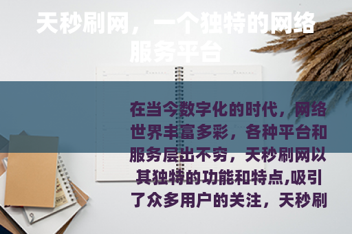 在当今数字化的时代,网络世界丰富多彩,各种平台和服务层出不穷,天秒刷网以其独特的功能和特点,吸引了众多用户的关注。