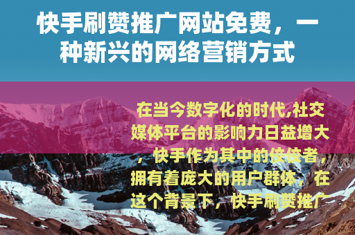 在当今数字化的时代,社交媒体平台的影响力日益增大,快手作为其中的佼佼者,拥有着庞大的用户群体,在这个背景下,快手刷赞推广网站免费的模式逐渐兴起,为许多用户和商家提供了一种新的推广途径。
