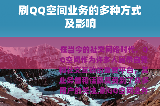 在当今的社交网络时代,QQ空间作为许多人展示自我和社交互动的重要平台,其业务量和活跃度受到了众多用户的关注,刷QQ空间业务也随之成为了一个热门话题。