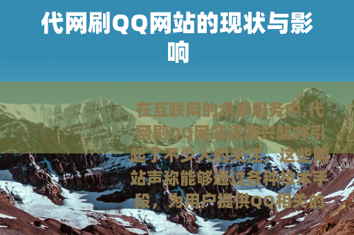 在互联网的众多服务中,代网刷QQ网站逐渐兴起并引起了不少人的关注,这些网站声称能够通过各种技术手段,为用户提供QQ相关的刷量服务,如QQ空间访客量、说说点赞量、好友数量等。
