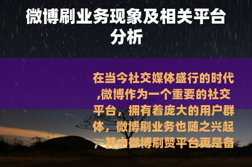在当今社交媒体盛行的时代,微博作为一个重要的社交平台,拥有着庞大的用户群体,微博刷业务也随之兴起,其中微博刷赞平台更是备受关注,而全网最低的微博刷赞平台更是吸引了不少人的目光。