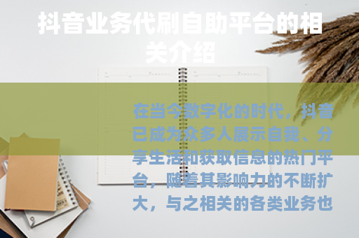 在当今数字化的时代,抖音已成为众多人展示自我、分享生活和获取信息的热门平台,随着其影响力的不断扩大,与之相关的各类业务也应运而生,其中抖音业务代刷自助平台受到了一定的关注。
