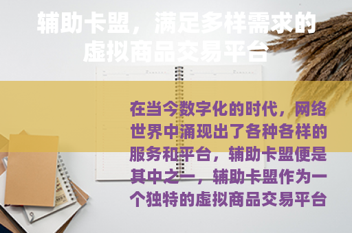 在当今数字化的时代,网络世界中涌现出了各种各样的服务和平台,辅助卡盟便是其中之一,辅助卡盟作为一个独特的虚拟商品交易平台,为众多用户提供了丰富的资源和便利的服务。