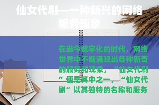 在当今数字化的时代,网络世界中不断涌现出各种新奇的服务和现象,“仙女代刷”便是其中之一。“仙女代刷”以其独特的名称和服务内容,在网络的某些角落逐渐引起了人们的关注。