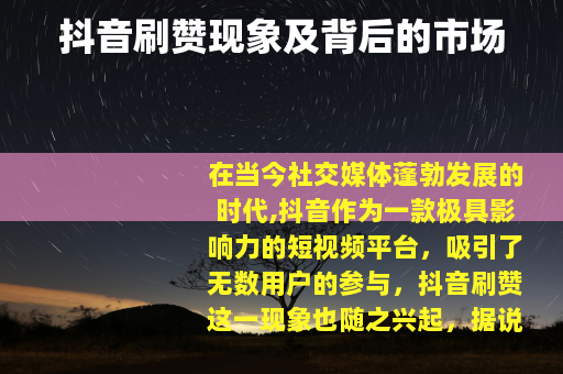 在当今社交媒体蓬勃发展的时代,抖音作为一款极具影响力的短视频平台,吸引了无数用户的参与,抖音刷赞这一现象也随之兴起,据说市场上存在着0.5元一百个赞的情况。