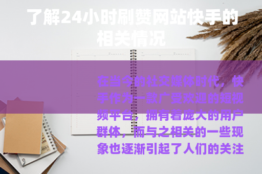 在当今的社交媒体时代,快手作为一款广受欢迎的短视频平台,拥有着庞大的用户群体,而与之相关的一些现象也逐渐引起了人们的关注,其中就包括24小时刷赞网站快手这样的存在。
