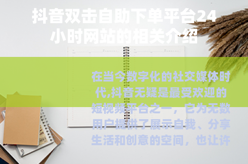在当今数字化的社交媒体时代,抖音无疑是最受欢迎的短视频平台之一,它为无数用户提供了展示自我、分享生活和创意的空间,也让许多人在这个平台上获得了关注和认可,而在抖音的生态中,点赞数、双击量等数据往往被视为衡量一个视频受欢迎程度的重要指标,抖音双击自助下单平台24小时网站便应运而生。