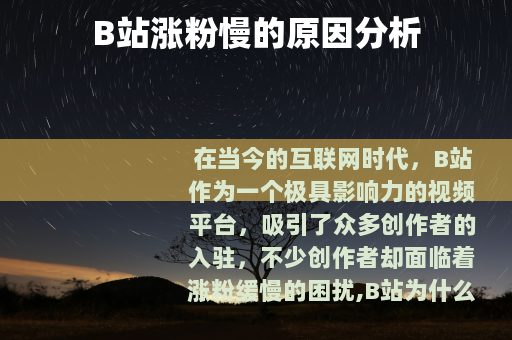 在当今的互联网时代,B站作为一个极具影响力的视频平台,吸引了众多创作者的入驻,不少创作者却面临着涨粉缓慢的困扰,B站为什么涨粉慢呢?