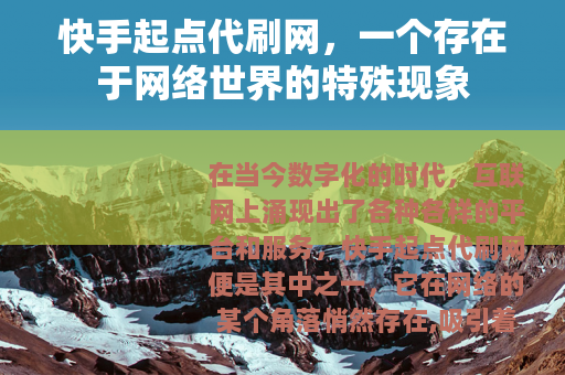 在当今数字化的时代,互联网上涌现出了各种各样的平台和服务,快手起点代刷网便是其中之一,它在网络的某个角落悄然存在,吸引着一部分人的关注。