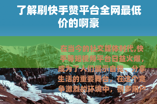 在当今的社交媒体时代,快手等短视频平台日益火爆,成为了人们展示自我、分享生活的重要舞台,在这个竞争激烈的环境中,很多用户都希望自己的作品能够获得更多的点赞,从而获得更多的关注和认可,而在众多提供刷赞服务的平台中,全网最低价的啊豪平台逐渐走进了人们的视野。