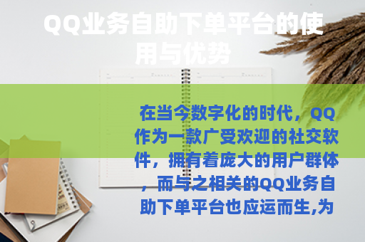 在当今数字化的时代,QQ作为一款广受欢迎的社交软件,拥有着庞大的用户群体,而与之相关的QQ业务自助下单平台也应运而生,为用户提供了诸多便利。