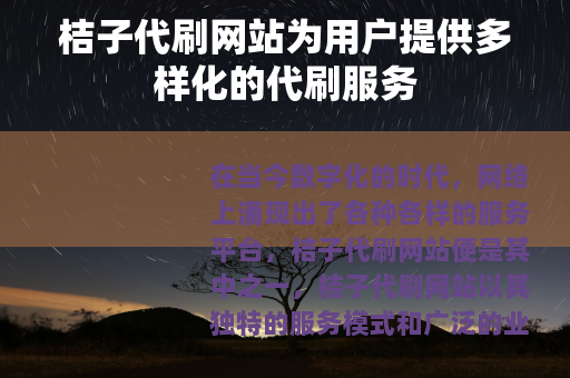 在当今数字化的时代,网络上涌现出了各种各样的服务平台,桔子代刷网站便是其中之一,桔子代刷网站以其独特的服务模式和广泛的业务范围,吸引了众多用户的关注。