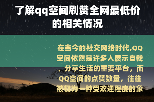 在当今的社交网络时代,QQ空间依然是许多人展示自我、分享生活的重要平台,而QQ空间的点赞数量,往往被视为一种受欢迎程度的象征,很多人都希望能够提升自己QQ空间的点赞数,在这种需求下,qq空间刷赞全网最低价的服务便应运而生。