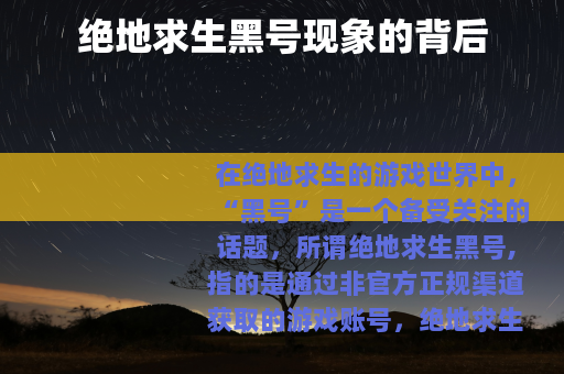 在绝地求生的游戏世界中,“黑号”是一个备受关注的话题,所谓绝地求生黑号,指的是通过非官方正规渠道获取的游戏账号。