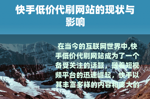 在当今的互联网世界中,快手低价代刷网站成为了一个备受关注的话题,随着短视频平台的迅速崛起,快手以其丰富多样的内容和庞大的用户群体吸引了无数人的目光,而在这个过程中,快手低价代刷网站也应运而生,为一些用户提供了看似便捷的服务。