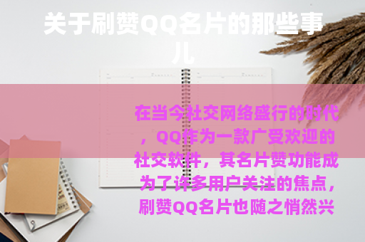 在当今社交网络盛行的时代,QQ作为一款广受欢迎的社交软件,其名片赞功能成为了许多用户关注的焦点,刷赞QQ名片也随之悄然兴起,成为了一个独特的网络现象。