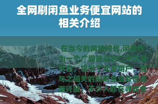 在当今的网络时代,闲鱼作为一个广受欢迎的二手交易平台,吸引了众多用户,而与之相关的刷闲鱼业务也逐渐兴起,不少人都在寻找全网刷闲鱼业务最便宜的网站。