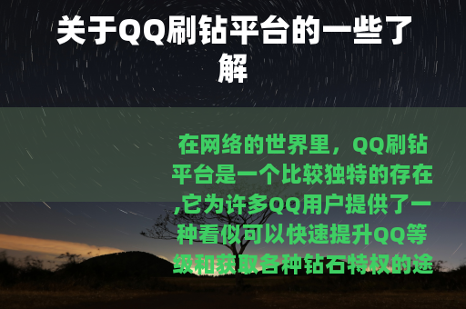 在网络的世界里,QQ刷钻平台是一个比较独特的存在,它为许多QQ用户提供了一种看似可以快速提升QQ等级和获取各种钻石特权的途径。