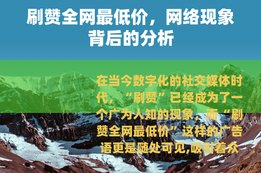在当今数字化的社交媒体时代,“刷赞”已经成为了一个广为人知的现象,而“刷赞全网最低价”这样的广告语更是随处可见,吸引着众多用户的目光。