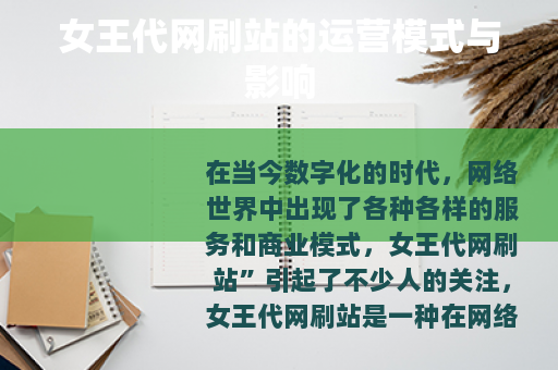 在当今数字化的时代,网络世界中出现了各种各样的服务和商业模式,女王代网刷站”引起了不少人的关注。