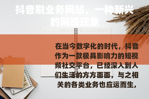 在当今数字化的时代,抖音作为一款极具影响力的短视频社交平台,已经深入到人们生活的方方面面,与之相关的各类业务也应运而生,其中抖音刷业务网站便是一种备受关注的现象。
