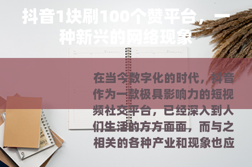 抖音的火爆使得许多用户渴望在这个平台上获得更多的关注和认可,对于普通用户来说,自己精心制作的视频如果能收获大量的点赞,那无疑是一种极大的鼓励和满足,而对于一些商家和创作者而言,高点赞量更是意味着更高的曝光度和潜在的商业价值,在这样的需求背景下,抖音1块刷100个赞平台便有了其生存的土壤。