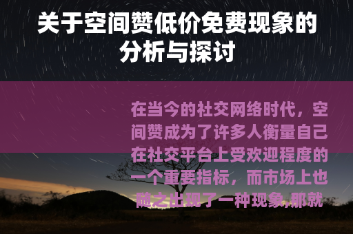 在当今的社交网络时代,空间赞成为了许多人衡量自己在社交平台上受欢迎程度的一个重要指标,而市场上也随之出现了一种现象,那就是空间赞低价免费的服务。