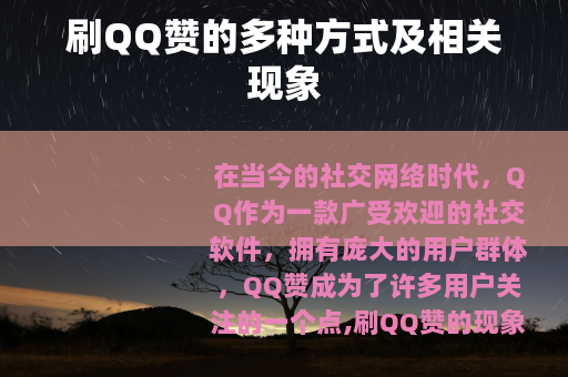 刷QQ赞是一种在QQ社交平台上普遍存在的现象,它有着多种实现方式和背后的原因,虽然它在一定程度上满足了用户的需求和商业目的,但也带来了一些不容忽视的问题,随着社交网络的不断发展和用户意识的提高,刷QQ赞的现象可能会发生一些变化,无论是用户自身还是平台方,都需要在满足需求和维护健康生态之间找到一个更好的平衡点。