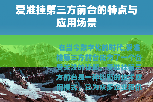 在当今数字化的时代,爱准挂第三方前台成为了一个备受关注的话题,爱准挂第三方前台是一种创新的技术应用模式,它为众多企业和机构带来了新的机遇和便利。