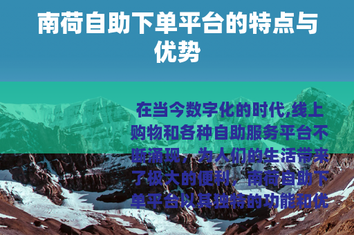 在当今数字化的时代,线上购物和各种自助服务平台不断涌现,为人们的生活带来了极大的便利,南荷自助下单平台以其独特的功能和优势,在众多平台中脱颖而出,受到了广大用户的喜爱和青睐。