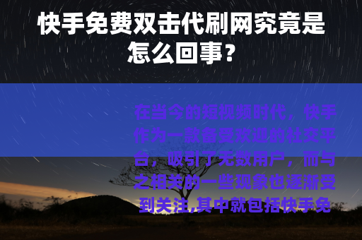 在当今的短视频时代,快手作为一款备受欢迎的社交平台,吸引了无数用户,而与之相关的一些现象也逐渐受到关注,其中就包括快手免费双击代刷网。