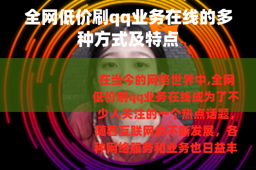 在当今的网络世界中,全网低价刷qq业务在线成为了不少人关注的一个热点话题,随着互联网的不断发展,各种网络服务和业务也日益丰富,qq业务作为其中的重要组成部分,有着众多用户的需求。