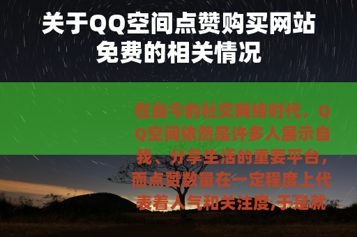 QQ空间点赞购买网站免费的现象虽然在一定程度上满足了部分用户对于点赞和关注度的需求,但我们也要理性看待其利弊,不能盲目地依赖这些网站,而是要在努力提升自己空间内容质量的基础上,合理利用各种方式来增加自己的人气和影响力,才能在QQ空间中真正建立起属于自己的有价值的社交圈子,让自己的社交生活更加丰富多彩。
