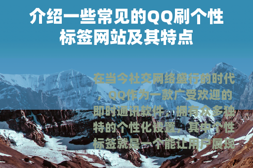 在当今社交网络盛行的时代,QQ作为一款广受欢迎的即时通讯软件,拥有众多独特的个性化设置,其中个性标签就是一个能让用户展现自我特色的有趣功能,许多用户都希望自己的QQ个性标签能够更加独特、丰富,从而吸引更多好友的关注,市面上出现了不少QQ刷个性标签的网站。
